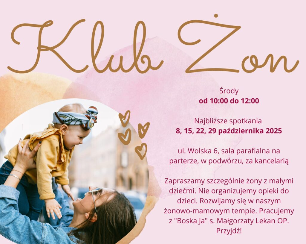 - Zapraszamy mamy z dziećmi na spotkania Klubu Żon, które odbywają się w środy o godz. 10:00 w sali parafialnej.